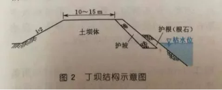 為了提高險工的抗溜能力,20世紀50年代初期對險工進行了“石化”。其后修建險工及搶險時已很少采用秸土工,并且對已有的丁壩、垛、護岸進行了改建,將秸土混合結構型式改為由土壩體、護坡、護根3部分組成的結構型式。土壩體由壤土筑成。為保護土壩體免遭水流沖刷破壞,在受溜部位上部建有護坡、下部建有護根。為適應、利用黃河含沙量大的特點,護坡、護根在新修及搶險時一般多采用柳石結構。柳料年久腐爛后用石料補充,因此在壩垛穩(wěn)定之后,柳石工就變成了石工。