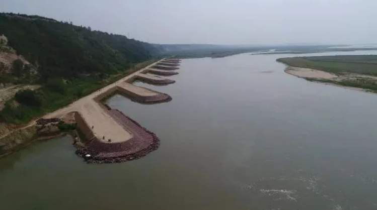 這就是黃河下游控導工程,調(diào)節(jié)河勢,保護大堤,是黃河下游防汛的第一道防線。