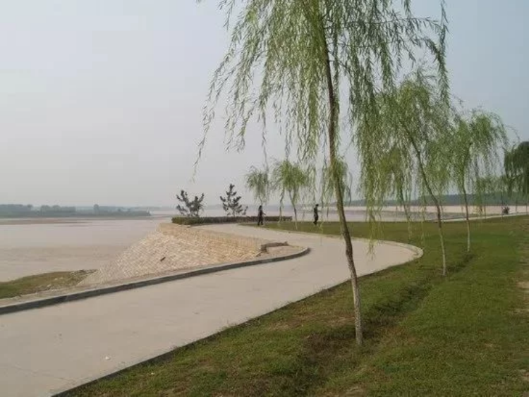 曹崗險工處,黃河河道由東西流向急轉為南北流向,形成橫河,河水急沖堤壩,形成險中之險,臨背懸差為全河之最,世稱黃河第一險工。