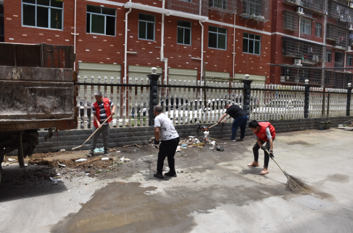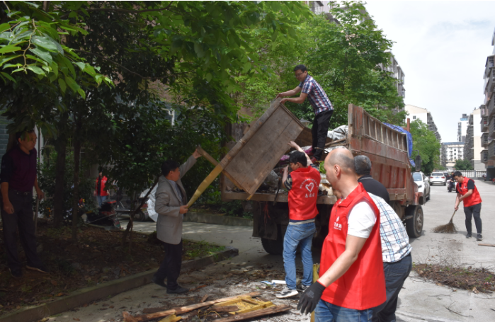 在公司黨員帶領下,員工們個個干勁十足,將長期遺棄堆放在小區(qū)里的雜物和垃圾抬上車裝到垃圾填埋場,