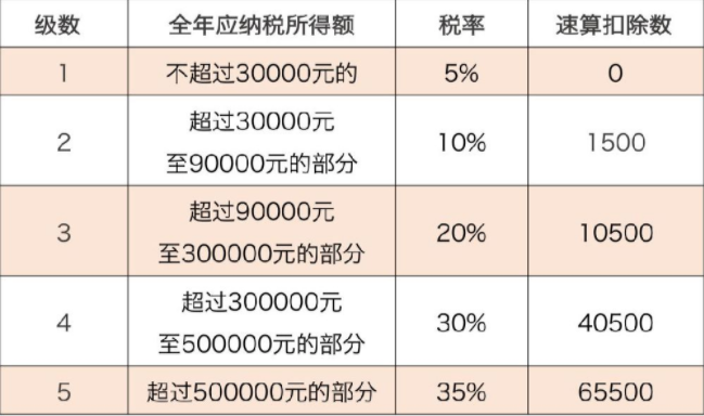 個(gè)體工商戶的生產(chǎn)、經(jīng)營所得和對(duì)企事業(yè)單位的承包經(jīng)營、承租經(jīng)營所得適用的個(gè)人所得稅稅率表