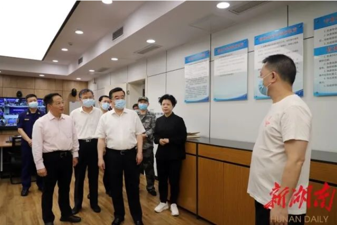 (6月5日,張慶偉在省應急指揮中心,調度部署防汛救災工作。以上圖片均由湖南日報全媒體記者 唐俊 攝)